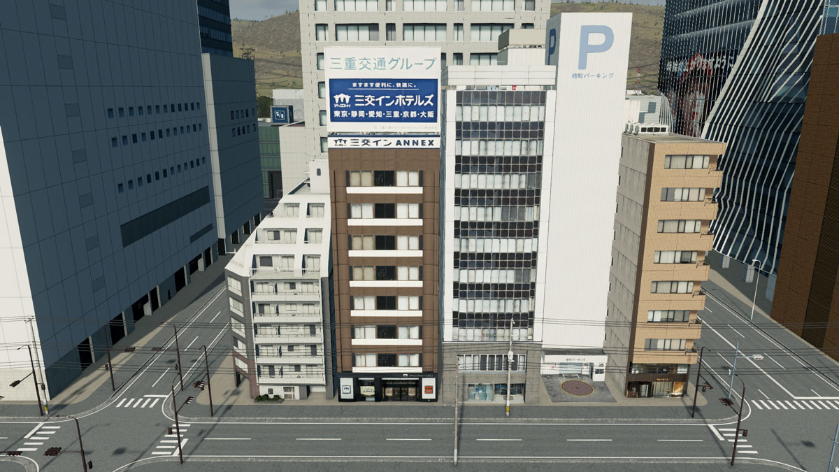 名古屋駅太閤通口(新幹線口)近くに位置する「三交Inn名古屋新幹線口ANNEX」を再現した建築物アセットです。