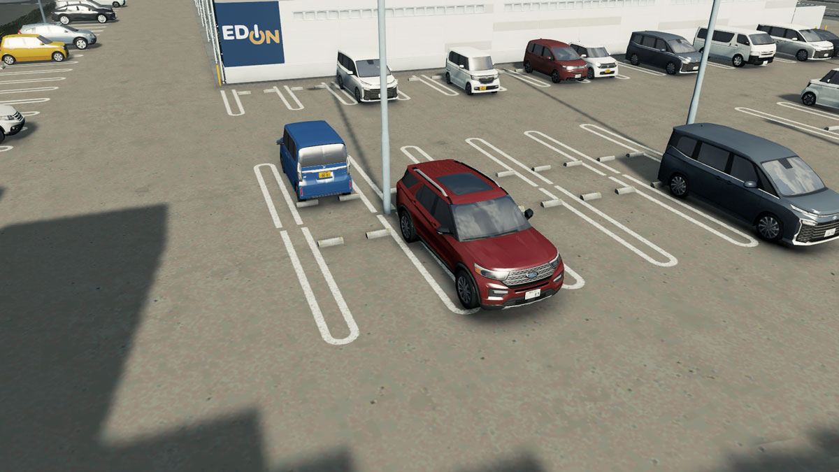 北米スタイルの住宅街や郊外の道路、ショッピングモールの駐車場などに最適な車両アセットです。