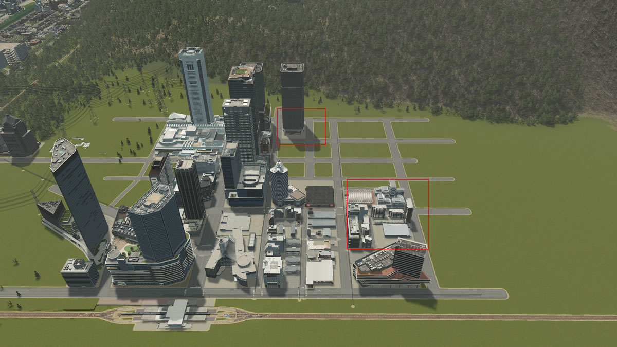 都心部のオフィス街や、川沿いの文化・商業地区などに配置することで、リアルな都市景観を演出できます。
