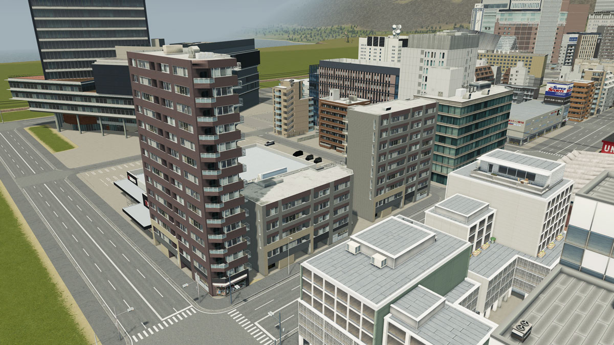 実際の建物を忠実に再現した日本の典型的な中層マンションで、都市部の住宅街景観を演出するのに適したアセットとなっています。