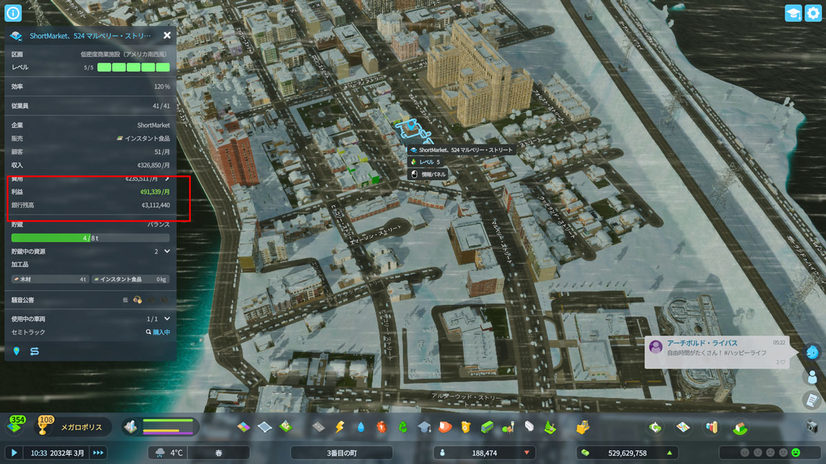 商業施設の利益計算が見直されたようで、やたらと利益が出るようになっています。