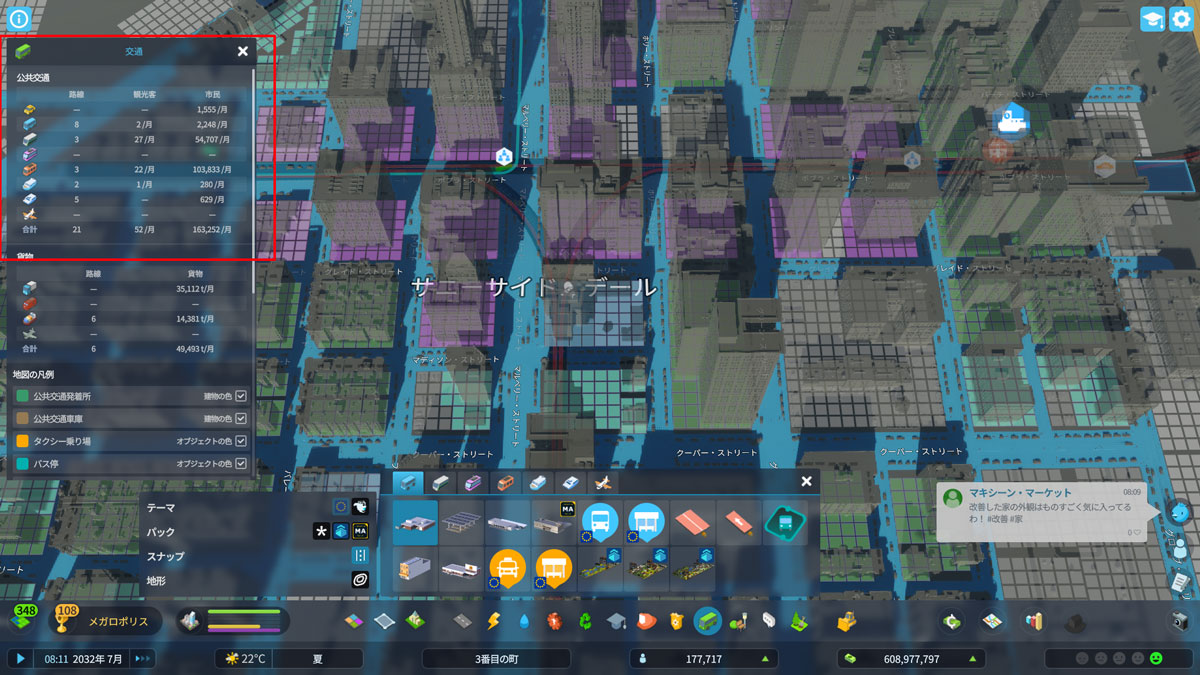 そのため商業・産業地区は大幅には増やさず、需要インジケーターを少し満たす程度に新設しました。