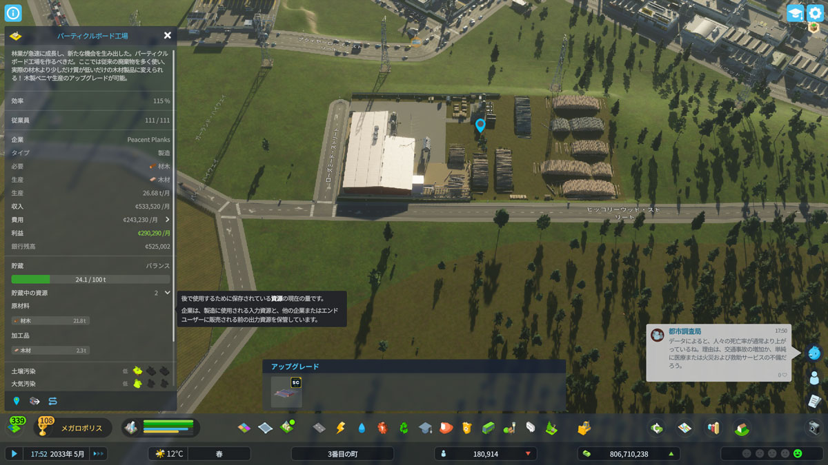 とはいえ、今後の都市開発で何かに使うはずですし、在庫として持っておくことに意味はあるでしょう。