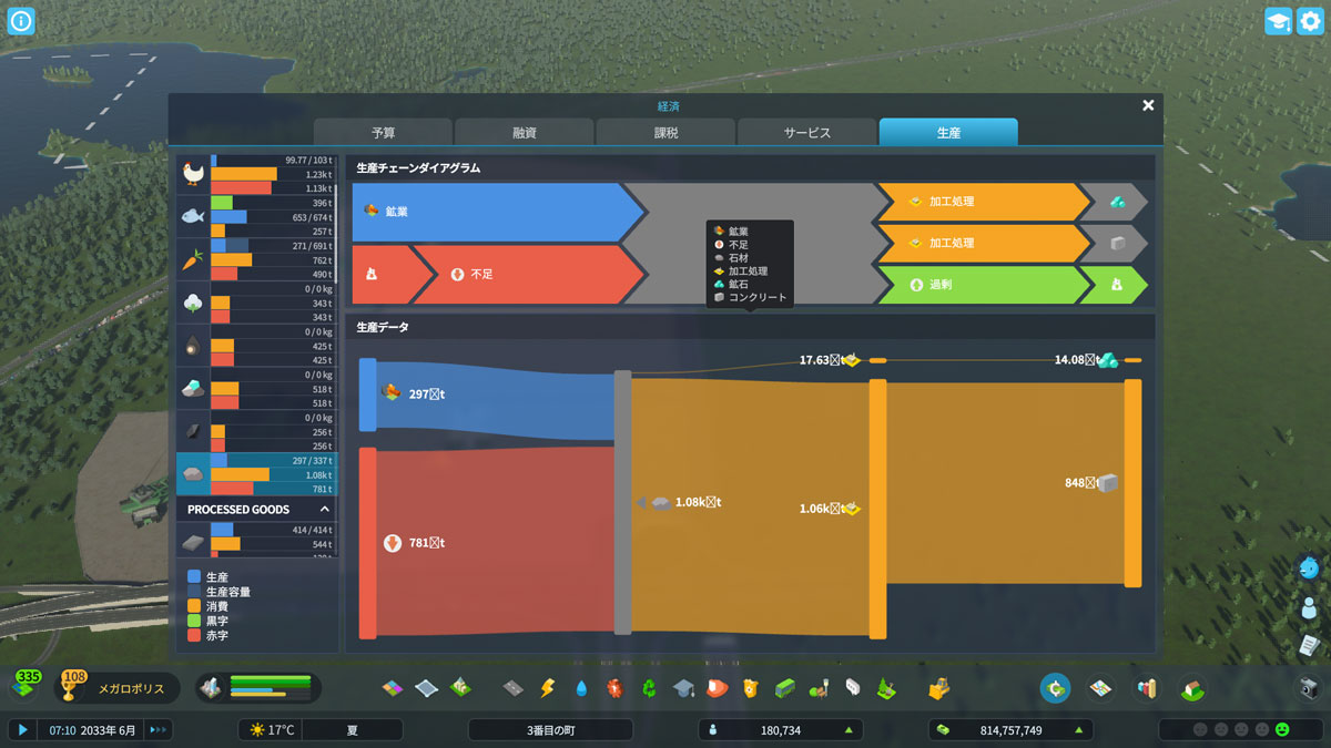 生産量に応じて建物が順次解放されていくので、都市の成長とともにサプライチェーンも発展していくという面白いシステムになっています。
