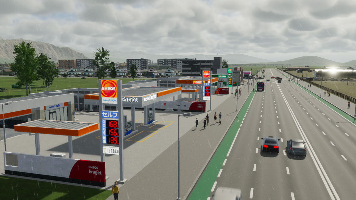 ENEOSガソリンスタンドや日本風ショップといった魅力的なアセットも追加できました。