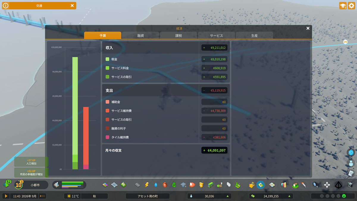 財政自体は圧倒的に黒字なのですが、大規模開発を行うには少し心許ない状況です。