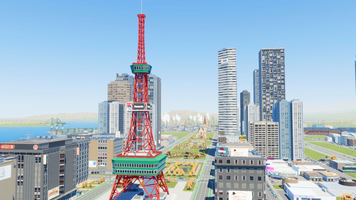Cities: Skylines II アセット紹介!さっぽろテレビ塔・ローソン・テトラポッド導入と大通公園建設レポート