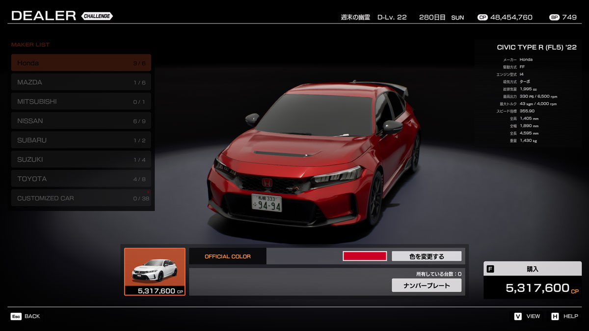 それは、CIVICツリーの最終車両であるHonda CIVIC TYPE R(FL5)’22を購入することでした。