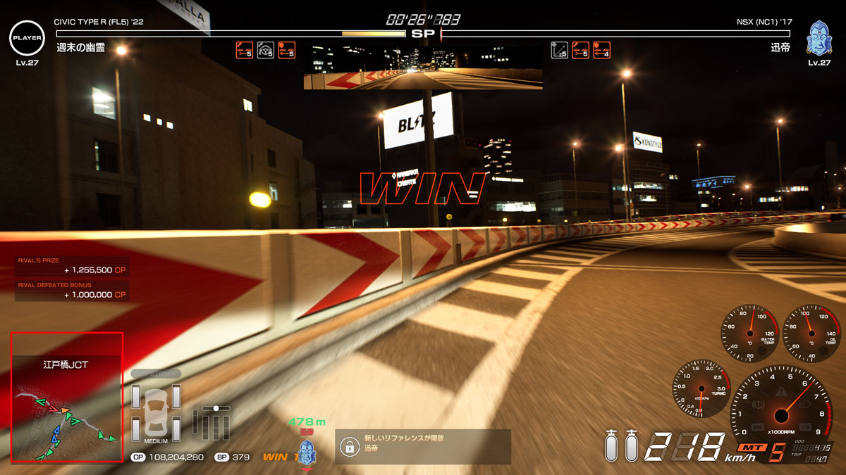 予想外の展開で勝利を手にしましたが、これが首都高バトルの真骨頂です。