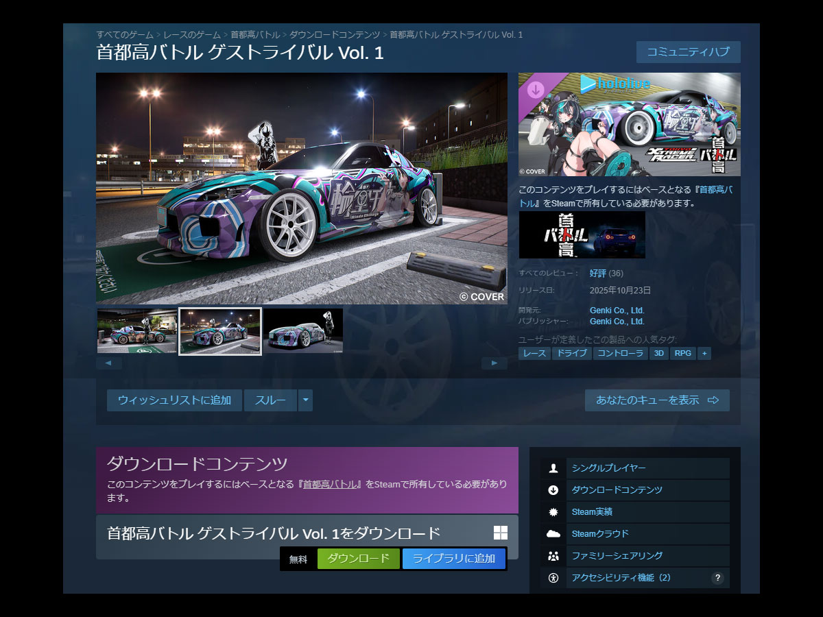 ホロライブプロダクション所属のVTuber「輪堂千速」さんとのコラボレーションDLCが配信され、首都高バトルの世界に新たなライバルが降臨したのです。