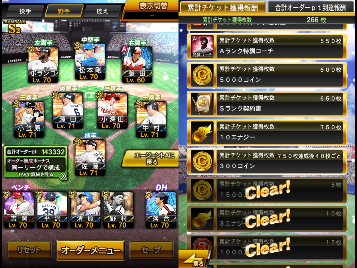 このイベントは代理人チケットを集めて選手を獲得し、オーダーを強化していくスタイルです。