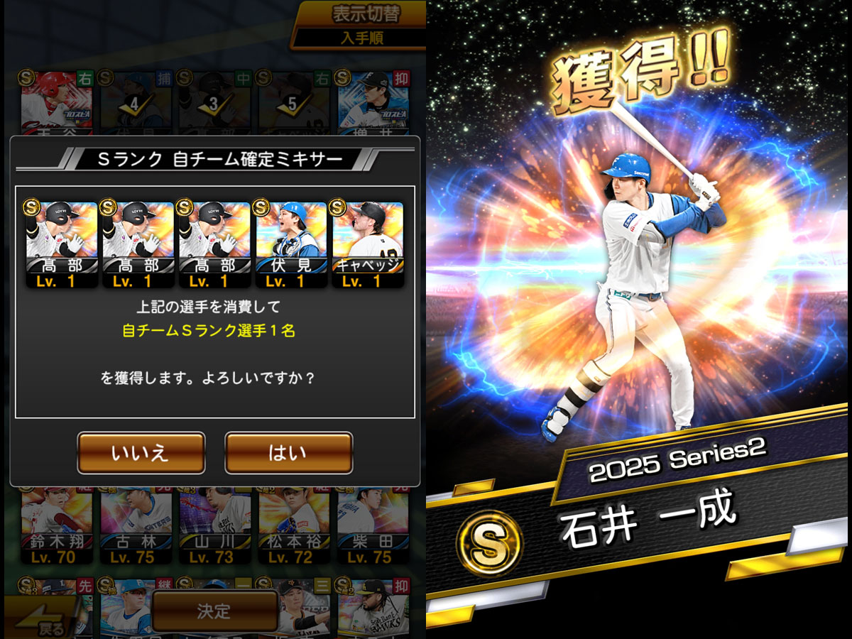高部選手×3、伏見捕手、キャベッジ投手の計5選手をミキサーに投入しました。
