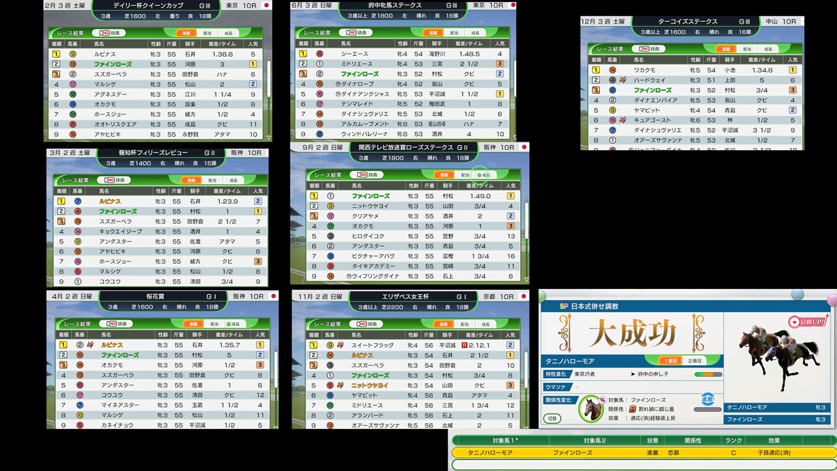 タニノハローモアでもGIが獲れることが証明できましたので、製品版ではさらに緻密なローテで「最強」を目指したいと思います!